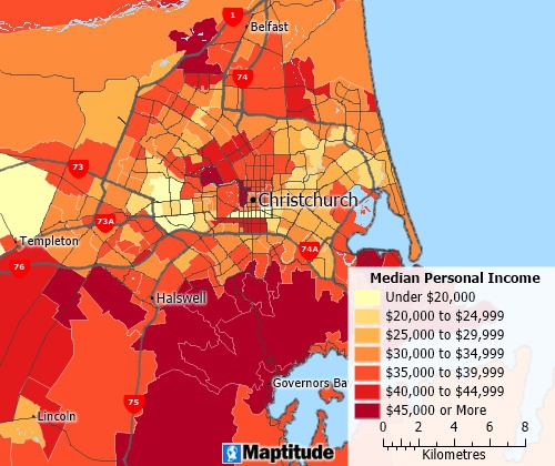 In addition, Maptitude includes one FREE Country Package of your choice (a US$595 value). Choose the New Zealand Country Package to get New Zealand maps and detailed demographic data for mesh blocks and regions.
