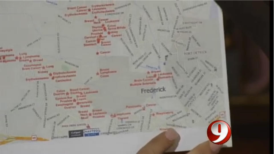 "Blood Tests Link Agent Orange To Fort Detrick Cancers" This month we showcase maps created by the Kristen Renee Foundation in a report documented by WUSA9 News: "Blood Tests Link Agent Orange To Fort Detrick Cancers". The Maptitude GIS Software is used to investigate a possible cancer cluster around Fort Detrick.