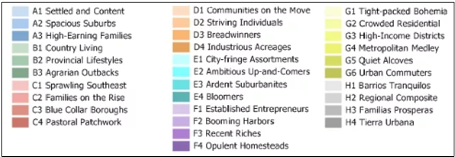 32 unique types of neighborhoods (geodemographic "subsegments") that can be found
