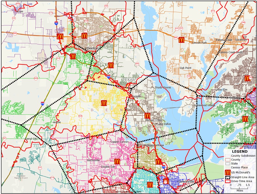 Map 6: Drivetime Area of Influence Analysis of McDonald’s Locations in Denton, Texas