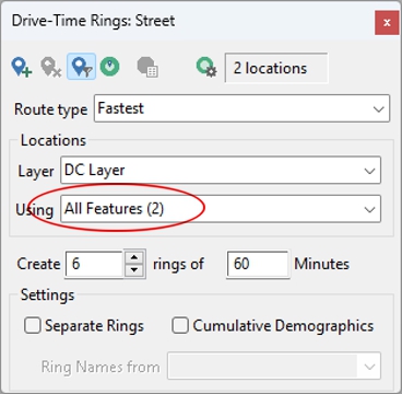 Drive-time rings show how far a vehicle can travel from a starting point within specific time intervals, accounting for road networks and realistic travel speeds. For distribution planning, this helps determine which stores a DC can efficiently serve while complying with federal regulations on driver hours.