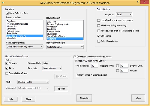 To do this we use MileCharter's* "Find Closest" function. We enable this by setting Only report the shortest/quickest routes check box: