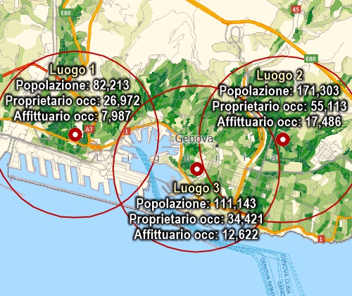 • Include strumenti di analisi sofisticati per calcolare anelli e bacini di influenza (bande / buffer), hot-spot, linee di flusso sulla rete stradale tra origini e destinazioni, distretti e circoscrizioni, anelli e territori  basati sul tempo di percorrenza, e superfici 3D (more...)