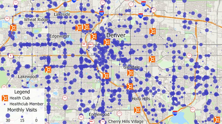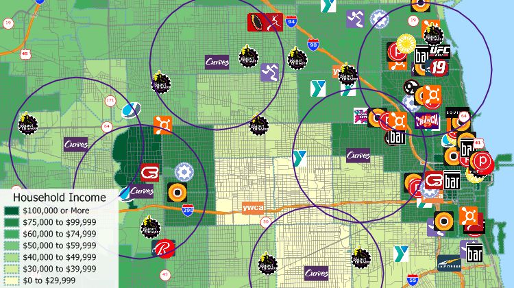 Maptitude is the best mapping software for gym, health, and fitness clubs. You can map your membership locations and member demographics and analyze your franchise territories.