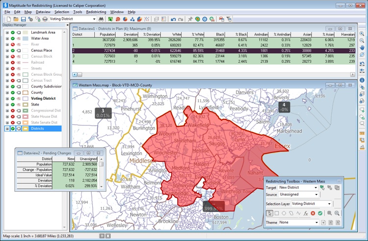 To learn more about new features in Maptitude for Redistricting 2019, please visit the Caliper website. For more information, call Caliper Sales at 617-527-4700, or email us.