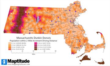 Maptitude is the best mapping software for business intelligence! Maptitude Country Packages include a landmark layer with the locations of businesses and Maptitude includes many geographic analysis tools including ones to create drive-time and distance rings and estimate their demographics.