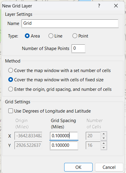 3. Choose Point, then set the grid size to something appropriate (e.g., 0.1 miles X and Y spacing)