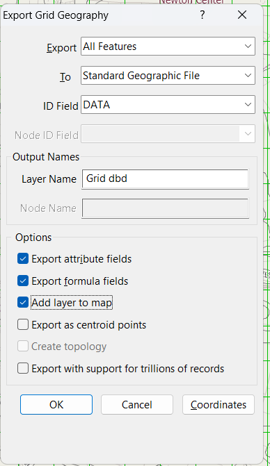 3. Set To as Standard Geographic File, name it Grid dbd, check Add Layer to Map, click OK
