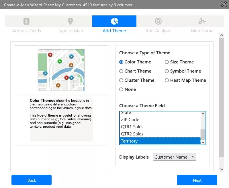 How Do I Create a Map From Excel Data. Type of Mapping Page. - Optionally, you can choose to create a theme with your data.