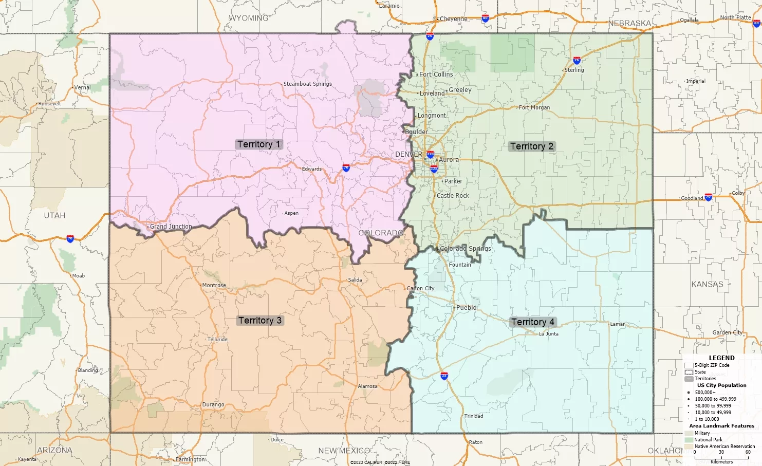 The first level of the hierarchy is ‘Territory’ which are the smallest geographic area and built from 5-Digit ZIP Codes.