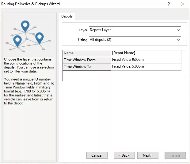 • Choose your stops and depots from the appropriate layers.