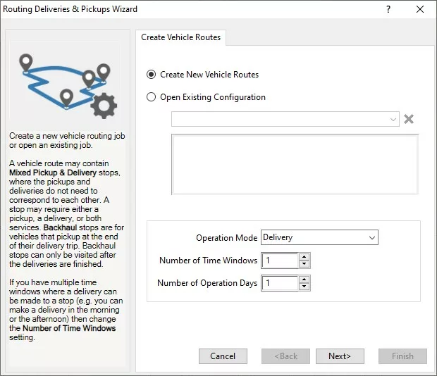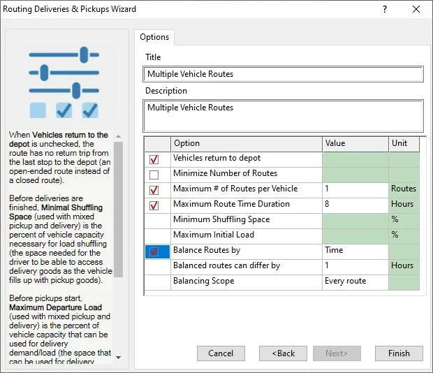 3. Select Create New Vehicle Routes and choose your settings: