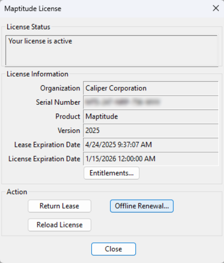 - In the License Management dialog box, click the “Return Lease” button. You’ll be asked to confirm that you want to return the “lease” and exit Maptitude.