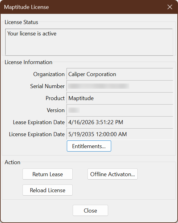Certain settings for your license of Maptitude are only set when the software activates. This means that if those settings are changed, you will need to deactivate and then reactivate your license in order to get the software to “recognize” these new settings. Common examples of this are: