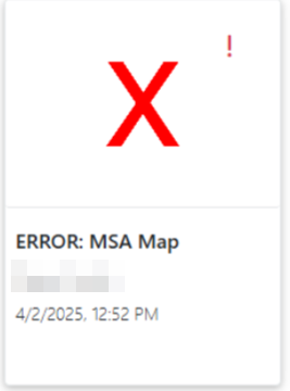 If a map fails to upload and is displaying as a large “X” thumbnail in the home page, click on the exclamation point icon in the upper right corner of the thumbnail. This will bring up a diagnostic error message. You can copy this and send it to support@caliper.com.