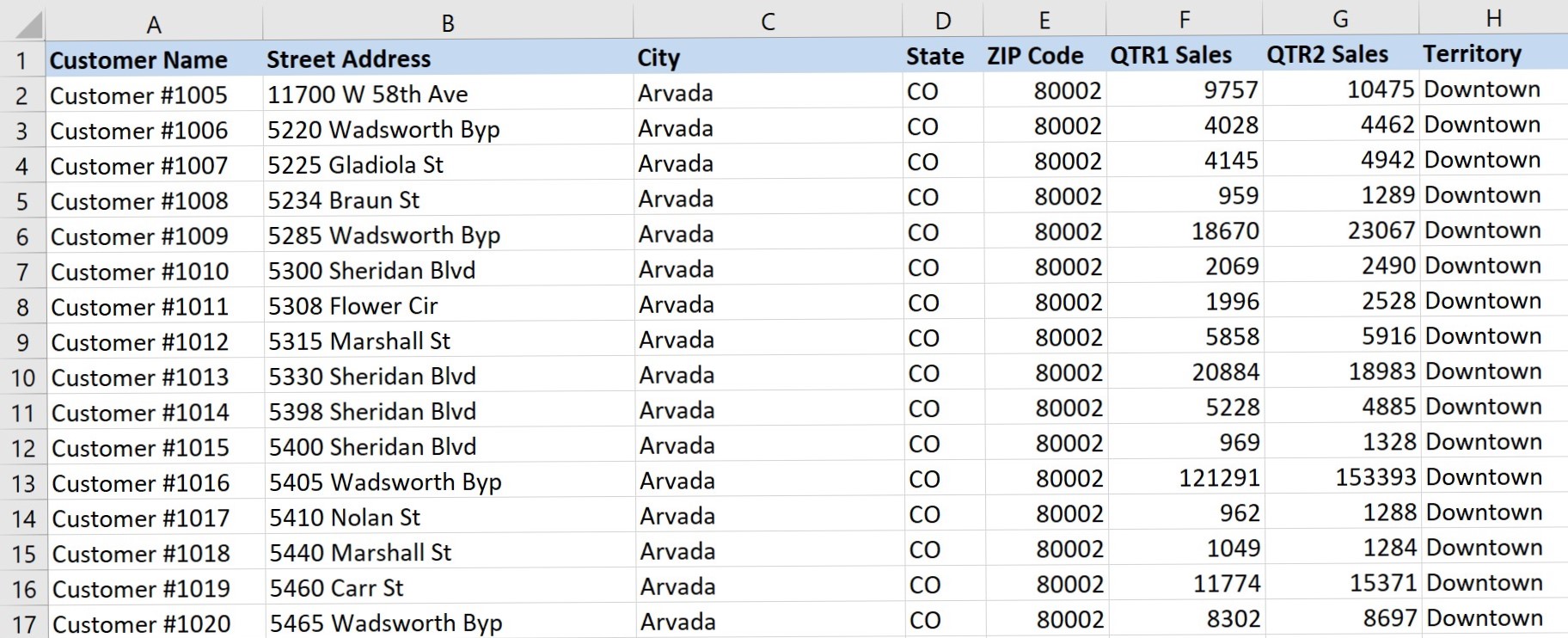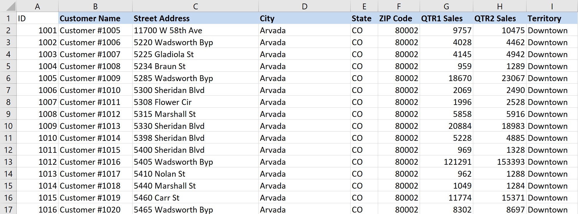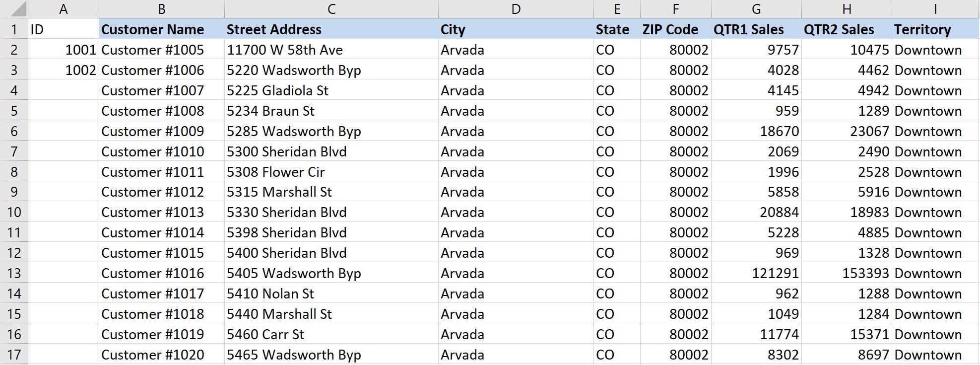 - Type “1001” and “1002” in the next two cells.