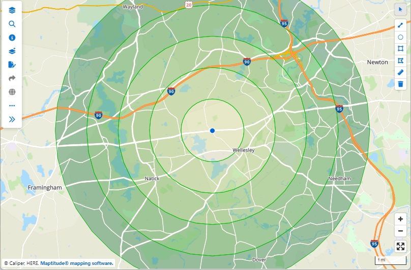 Maptitude Online has several tools for performing geographic analysis. With Maptitude Online you can: