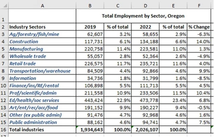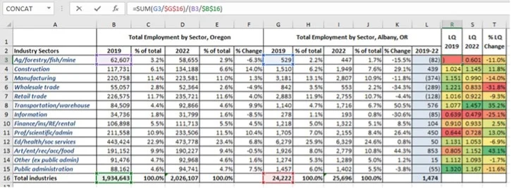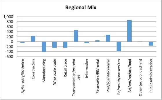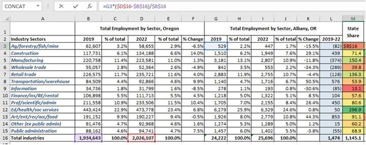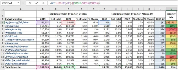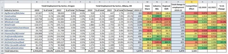 Excel sheet, looking at the Industry Mix, State Share, Regional Mix,