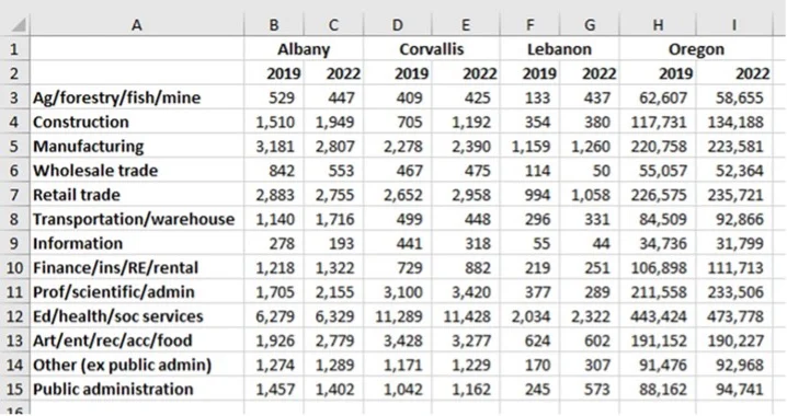 - Repeat these steps again for Corvallis and Lebanon. Since you now