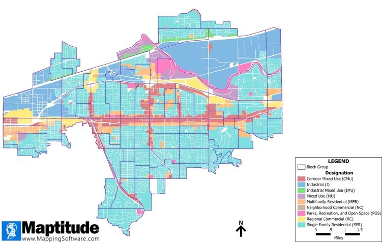 Map 3 – Maptitude Workspace – Land Use Designations Mix and Census Block Groups