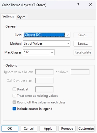 Manually determining which of 875+ stores should be served by which DC would take hours. The Maptitude tagging feature automates this assignment in minutes.