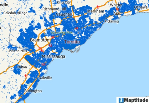 I found an efficient and straightforward solution in Maptitude. Essentially, I needed the transaction data in point format coupled with the spatial data shipped with Maptitude that includes maps for the census geography, including census tracts, which are polygons delineated by Statistics Canada where each tract’s population ranges between 2000 to 8000 people with an average of 4000 persons per census tract.