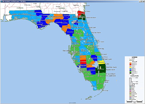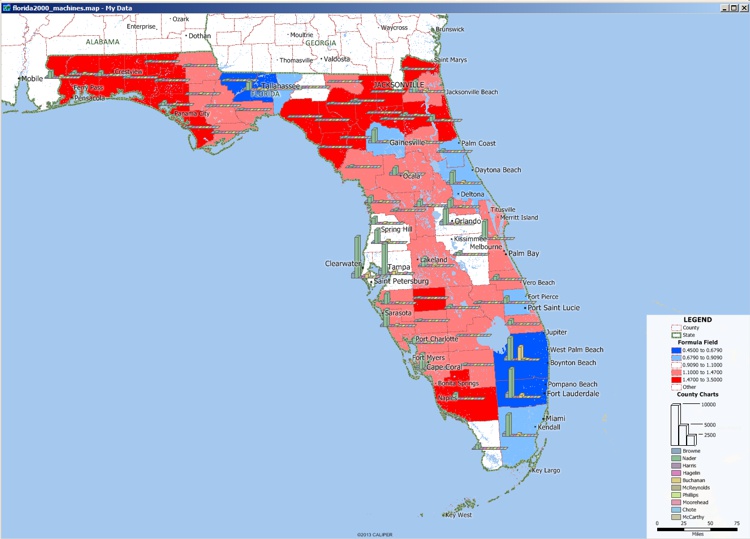 This example uses Caliper® Maptitude® to analyze the Florida results of the 2000 US Presidential Election.