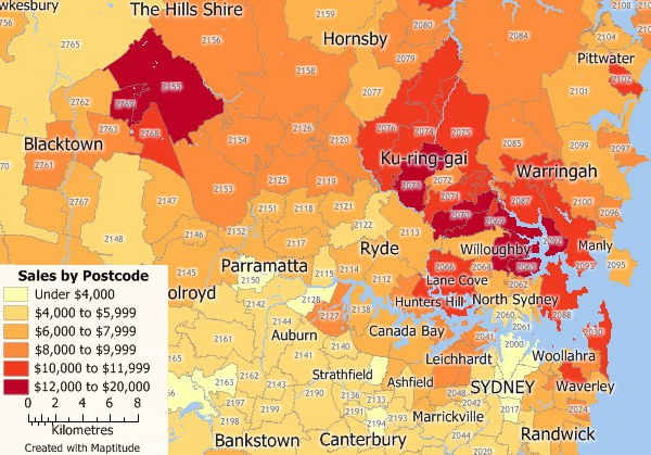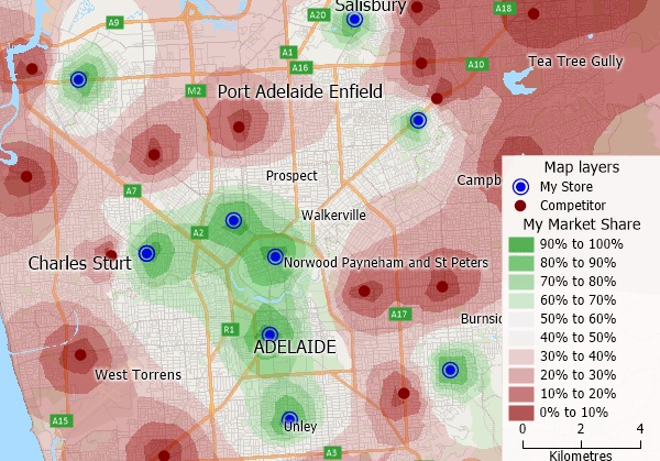 Perform market share analysis with Maptitude business mapping software for Australia.