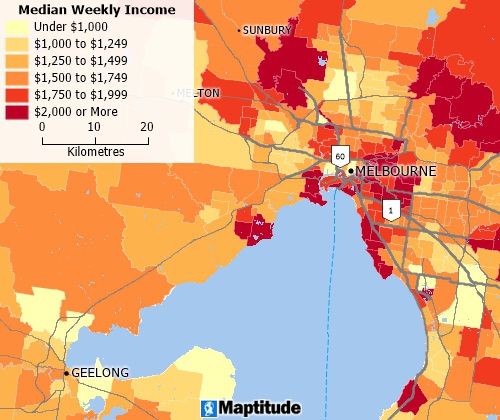Analyse locations with Maptitude Australia map software