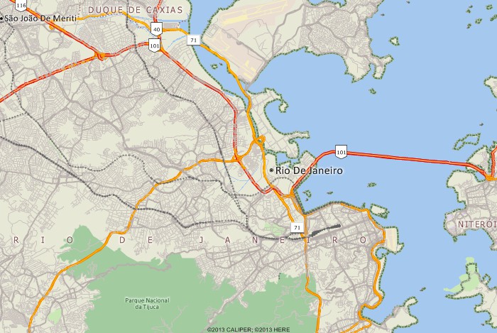 • Inclui uma camada nacional de Ruas com faixas de endereço para geocodificação (pin-mapping) e roteamento.