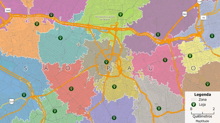 Maptitude permite a você compreender tendências, avaliar locais, e definir rotas ideais. Você pode usar suas próprias informações para identificar características geográficas que tenham impacto para você e para suas operações. Você se surpreenderá com a rapidez com que sua tomada de decisão será acelerada pela utilização dessa ferramenta SIG de fácil utilização.