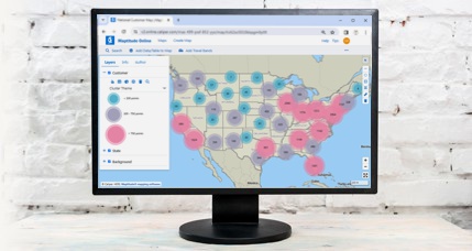 New features allow you to use drawing tools to interactively measure features, to add shapes to maps, and to download demographics by shape as an Excel report, and to add new thematics for cluster/bubble and density/hot-spot visualizations.