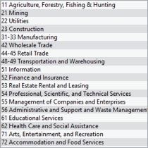 of businesses by type (by 6-digit North American Industry Classification System or "NAICS" codes, formerly known as SIC codes). For each business type (e.g.,