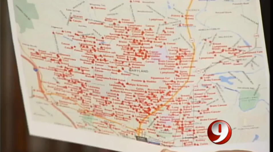 "Blood Tests Link Agent Orange To Fort Detrick Cancers" This month we showcase maps created by the Kristen Renee Foundation in a report documented by WUSA9 News: "Blood Tests Link Agent Orange To Fort Detrick Cancers". The Maptitude GIS Software is used to investigate a possible cancer cluster around Fort Detrick.