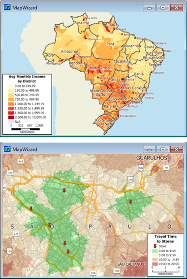 The Brazil data includes an up-to-date street layer with address data for geocoding and travel time information for computing routes and travel-time rings. Also included are building footprints for many urban locations, railroads, and comprehensive named landmarks that range from public facilities to commercial buildings including shops, restaurants, and retail stores. Demographic data describing population, age, race, income, literacy, and housing are also provided for bairros, census regions and tracts, districts, states, and subdistricts.