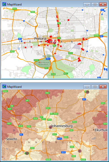 The South Africa data includes an up-to-date street layer with address data for geocoding and travel time information for computing routes and travel-time rings. Also included are building footprints for many urban locations, railroads, and comprehensive named landmarks that range from public facilities to commercial buildings including shops, restaurants, and retail stores.