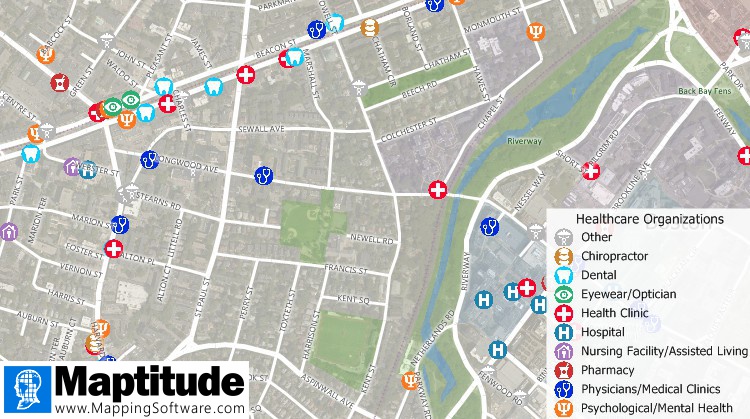 NEWTON, MASSACHUSETTS (USA) - Caliper is excited to announce the release of free updated healthcare map layers. We are providing over 5 million medical and healthcare provider points-of-interest. These locations can be analyzed with the tools and data already included with Maptitude, such as counts by health insurance coverage type. The provision of the entire healthcare landscape in a mapping format is unprecedented.