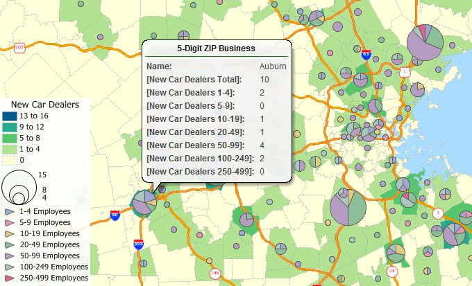 NEWTON, MASSACHUSETTS (USA) - The Maptitude 2020 ZIP Code Business Count data are available now. The update includes the total number of businesses by type (by 6-digit North American Industry Classification System or "NAICS" codes, formerly known as SIC codes). For each business type (e.g., Full-Service Restaurants) you can map the number that fall into each employment size category (e.g., Full-Service Restaurants with 1-4 employees, Full-Service Restaurants with 1000+ employees, etc.).