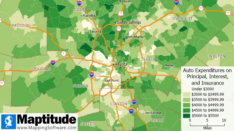 The Consumer Expenditure data are free for Maptitude 2020 users, and is also available as shapefile, KML, KMZ, or GeoJSON for a fee. If you have any questions about Maptitude or data availability contact the Maptitude team.
